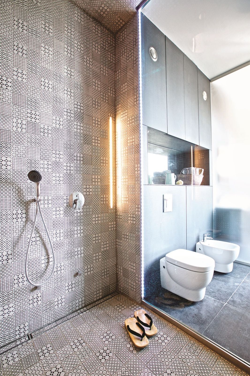 Azjatyckie fascynacje odzwierciedla też podłoga – to błękitny piaskowiec jak na chodnikach w Hanoi. Biała ściana w atrium jest echem domów japońskich i rozwiązaniem, które architekt zastosował już, projektując Teatr Lalki i Aktora w Opolu. Oświetlenie firmy Erco pozwala budować nastrój wnętrza i wyławiać niuanse wystroju. – To daje magiczne efekty, zupełnie jak we wschodnich świątyniach – mówi gospodarz. Te świątynie – jak i cała Azja – są dla niego ucieleśnieniem romantyzmu.