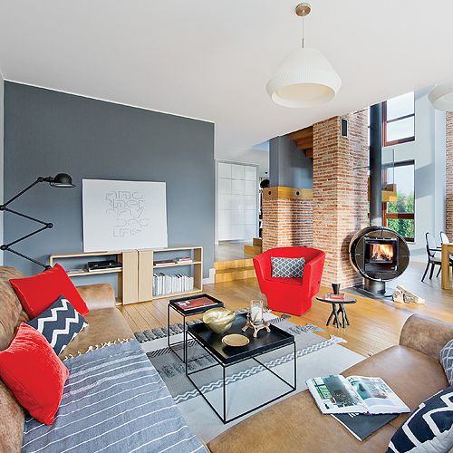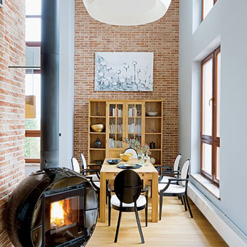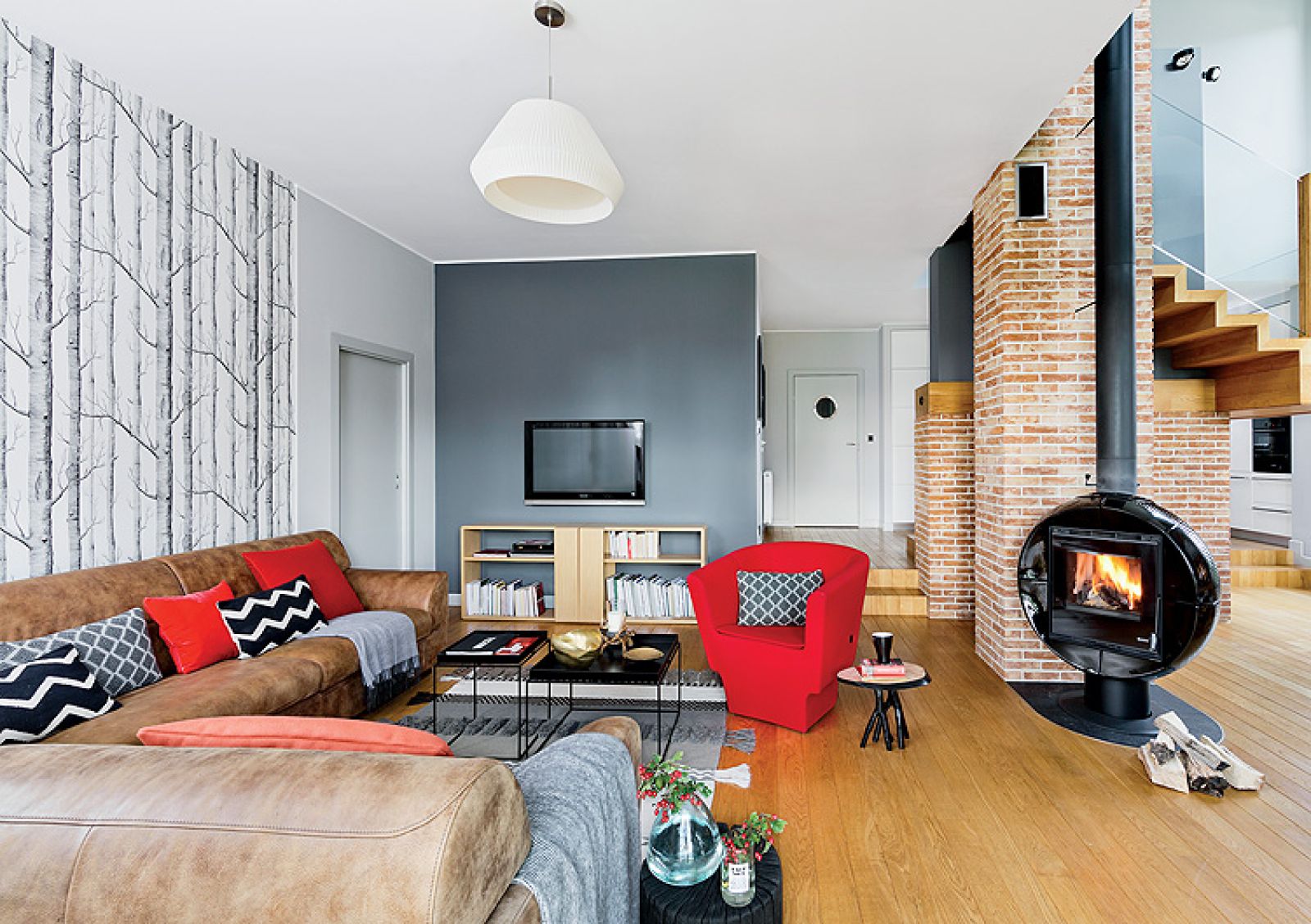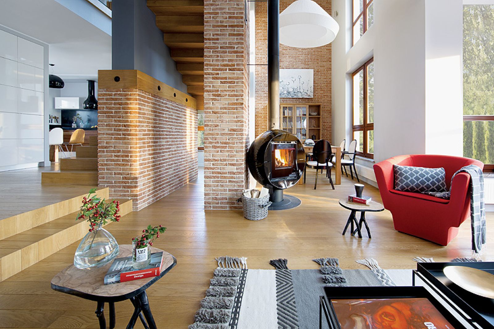 Obejrzeli wiele różnych domów, jednego nawet o włos nie kupili, ale cały czas ciągnęło ich na tamto wzgórze, z którego przy dobrej pogodzie widać Tatry. – Urządzając dom, trzeba się dopasować do kipiącej za oknem przyrody – mówi Agata, która prowadzi własną firmę projektowania wnętrz Aranżada. – Lubię styl industrialny, ale ocieplony. Uwielbiam łączyć przeciwności: zimne kolory z ciepłymi, obcość metalu z naturalnością drewna, gładkie szkło z chropowatością cegły.