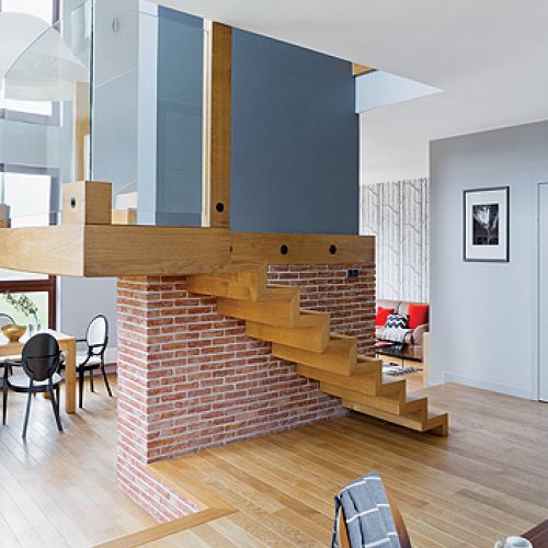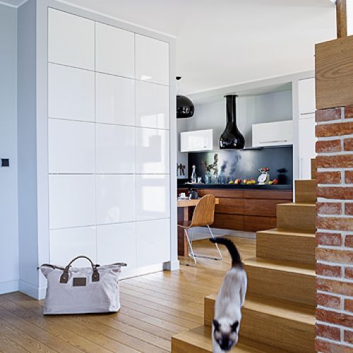 Dla projektanta urządzanie własnego domu to wyzwanie i najtrudniejsza próba. Trzeba pogodzić ambicje z funkcjonalnością i jeszcze pamiętać, że w oczach klientów efekt będzie czymś w rodzaju wizytówki. – Dom to nie ekspozycja na targach, której jedynym zadaniem jest pięknie wyglądać – mówi projektantka i właścicielka. – Ale wygodne nie musi wcale być nieładne. I musi mieć to coś. Dom Agaty to ma. Wystarczy spojrzeć na schody, wiszące na ścianie nośnej, bez podpór na podłodze. To autorski projekt Mirka.