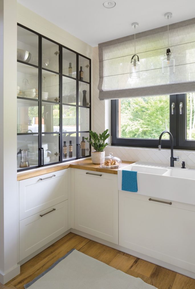 Lofty polubili, gdy kilka lat temu siostra Daniela kupiła zagraniczny album o takich wnętrzach. Iza z mężem obejrzeli go i zachwycili się tym stylem. Pomysły z książki przenieśli do swego domu na wsi. Miało być dużo miejsca i mało mebli. W kuchni w stylu loftowym obok białych szafek z płycinami i dębowymi blatami zrobili w płytkiej wnęce ścienną witrynę z szybkami oprawionymi w czarne ramy. Dziś zwraca na nią uwagę każdy, kto tu tylko wchodzi. Na ścianach ułożyli w jodełkę podłużne płytki i dobrali szwedzkie szklane lampy, które kojarzą się z bańkami na mleko.