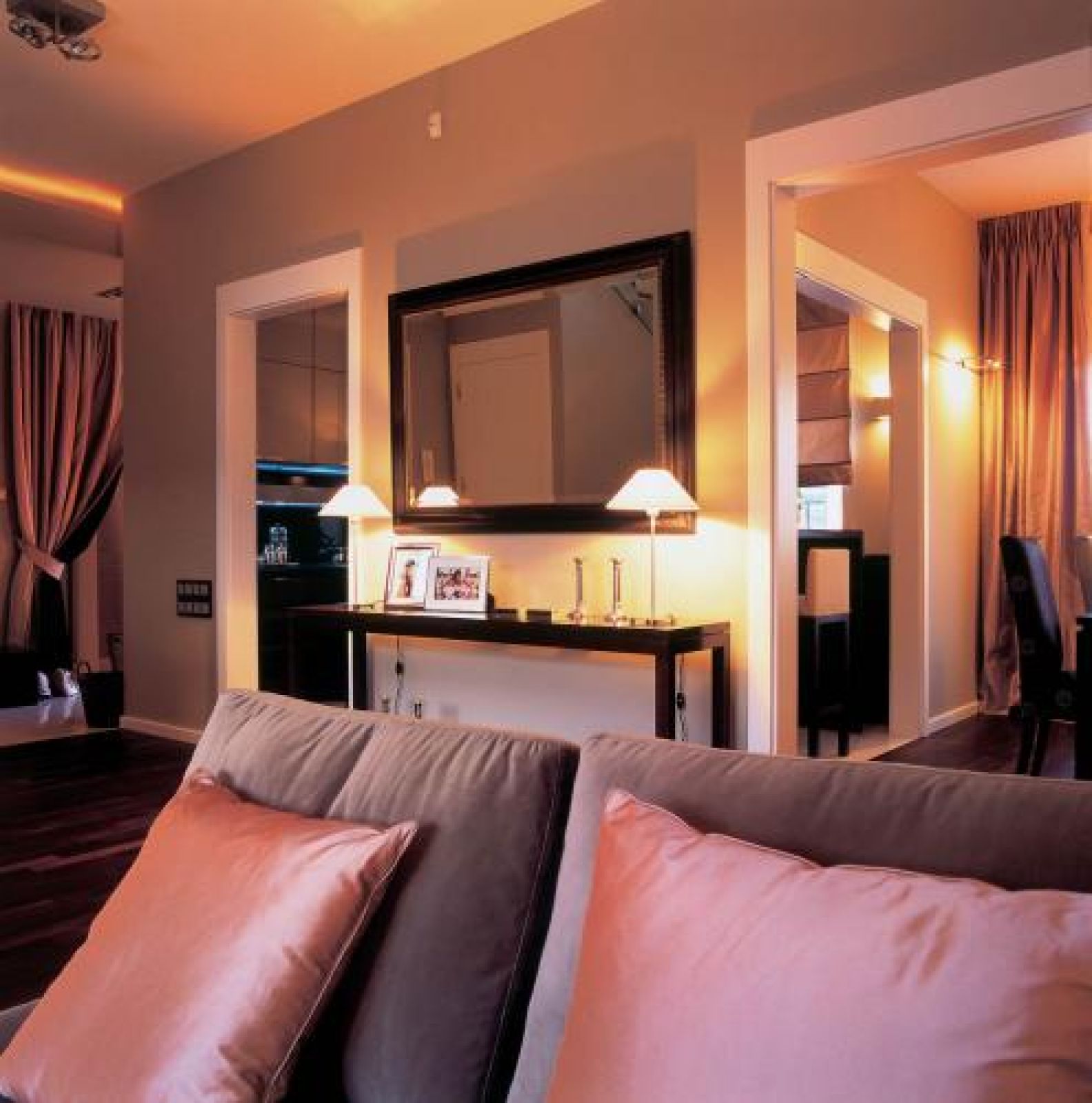 – Wiele rzeczy wyszło dopiero w czasie pracy, chwilami przypominało to burzę mózgów, a efekt zaskakiwał nawet same projektantki – wspomina Marcin. Tak było na przykład z telewizorem. Wszyscy się głowili, jak go zmieścić w niedużym salonie, gdzie każda ściana jest już zajęta. Ale przecież czarna, lśniąca tafla ekranu przypomina lustro, a ono zawsze dobrze wygląda nad kominkiem. I tak znalazło się miejsce na telewizor.