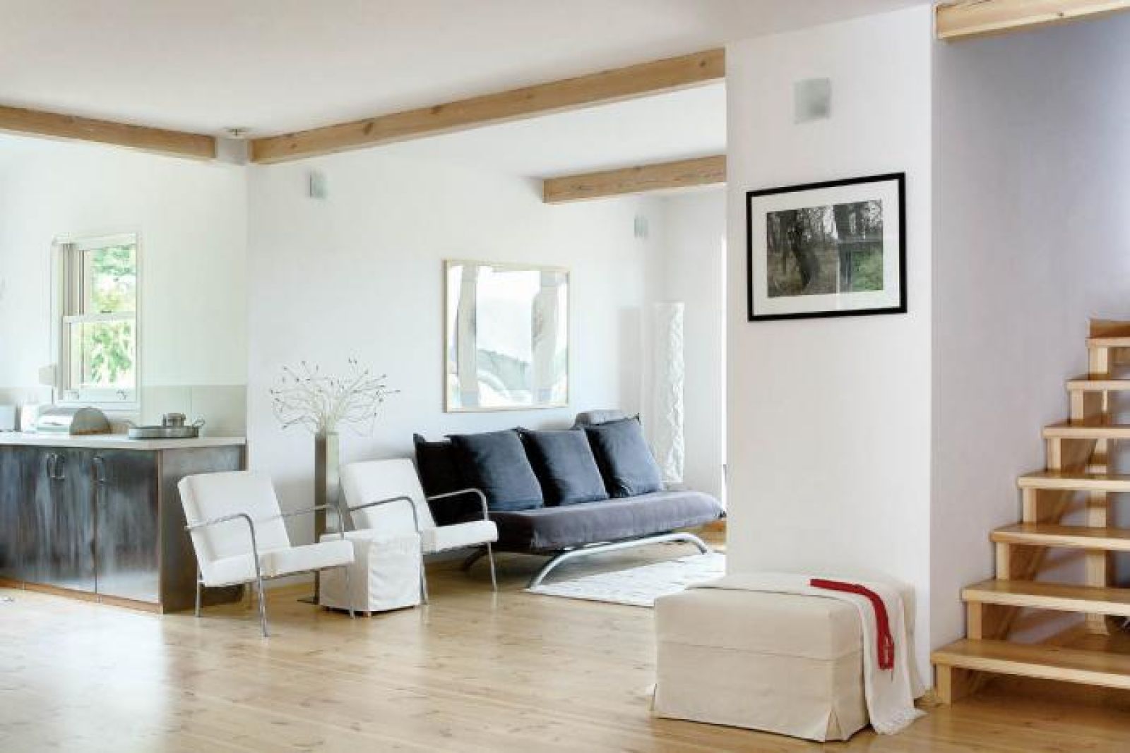 Miał być przestronny, z dużą liczbą okien i choć stał na wsi, bez żadnych rustykalnych klimatów. Na przekór stereotypom i z potrzeby minimalizmu urządziła go bez sentymentalnych przedmiotów, które zagraciły jej warszawskie mieszkanie. Sentyment pozostał tylko do pięknych czarno-białych fotografii drzew autorstwa Jerzego Malinowskiego.