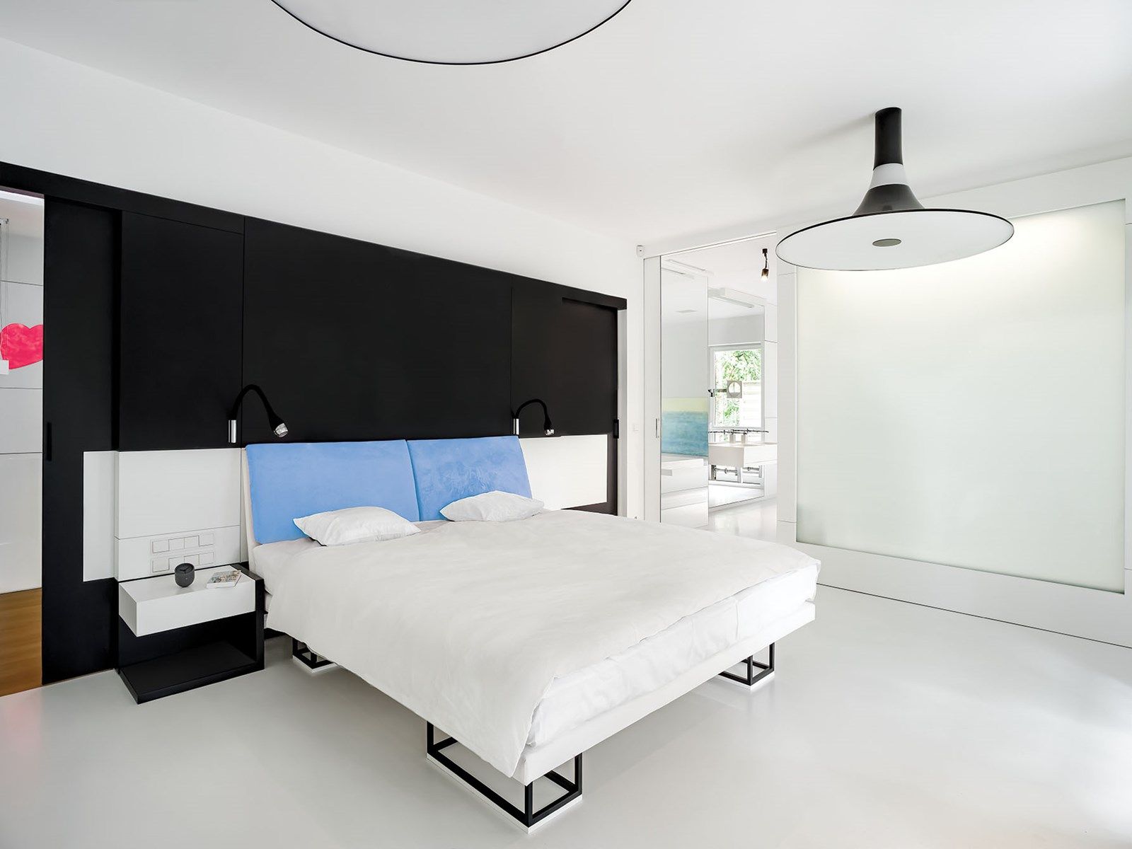 Obaj długo nie mogli znaleźć dzieł, które pasowałyby do wnętrza. Architekt wpadł na szalony pomysł, że stworzy je sam do spółki z przyjacielem Henrykiem Kowalskim. Obrazy miały być w stylu zen, a wyszedł ekspresjonizm z radosnymi strużkami farb. W twórczym ferworze namalowano czerwone kółko na drewnianym torsie na znak nowego życia – właściciele spodziewali się wtedy dziecka. Emil tak się wkręcił w projekt, że na jego prośbę jedna ze stołowych nóg też jest czerwona. Oczywiście w odcieniu ferrari.