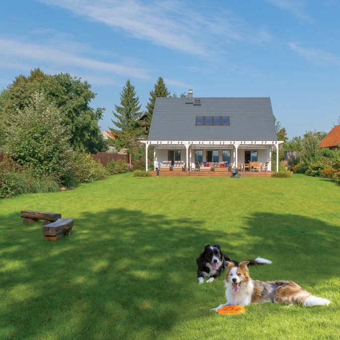 Wybór padł na działkę nad jeziorem Roś. Przez sitowie prowadzi do niego długi drewniany pomost, idealny do opalania, a jeszcze lepszy do ćwiczenia jogi. Medytacje pod rozgwieżdżonym niebem mają niezwykłą moc, o czym zdążyli się już przekonać i właściciele, i ich goście. Kogo nie interesują duchowe rozrywki, może ruszyć na kajaki, motorówkę, na tenis albo na konie – niemal po sąsiedzku znajduje się stadnina.