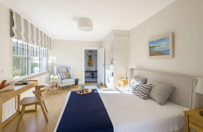 W jednej z łazienek architektka wpadła na genialny pomysł: ozdobiła ściany tapetami z przedrukiem Wielkich Jezior Mazurskich. Teraz to właśnie tutaj rozpoczynają się planowania wycieczek jachtem po jeziorze Śniardwy albo spływów do jeziora Kociołek. A kto nie chce ruszyć w rejs, też nudził się nie będzie. Wystarczy przejść 150 kroków na pomost w trzcinach. Stamtąd też roztaczają się widoki zapierające dech w piersiach.