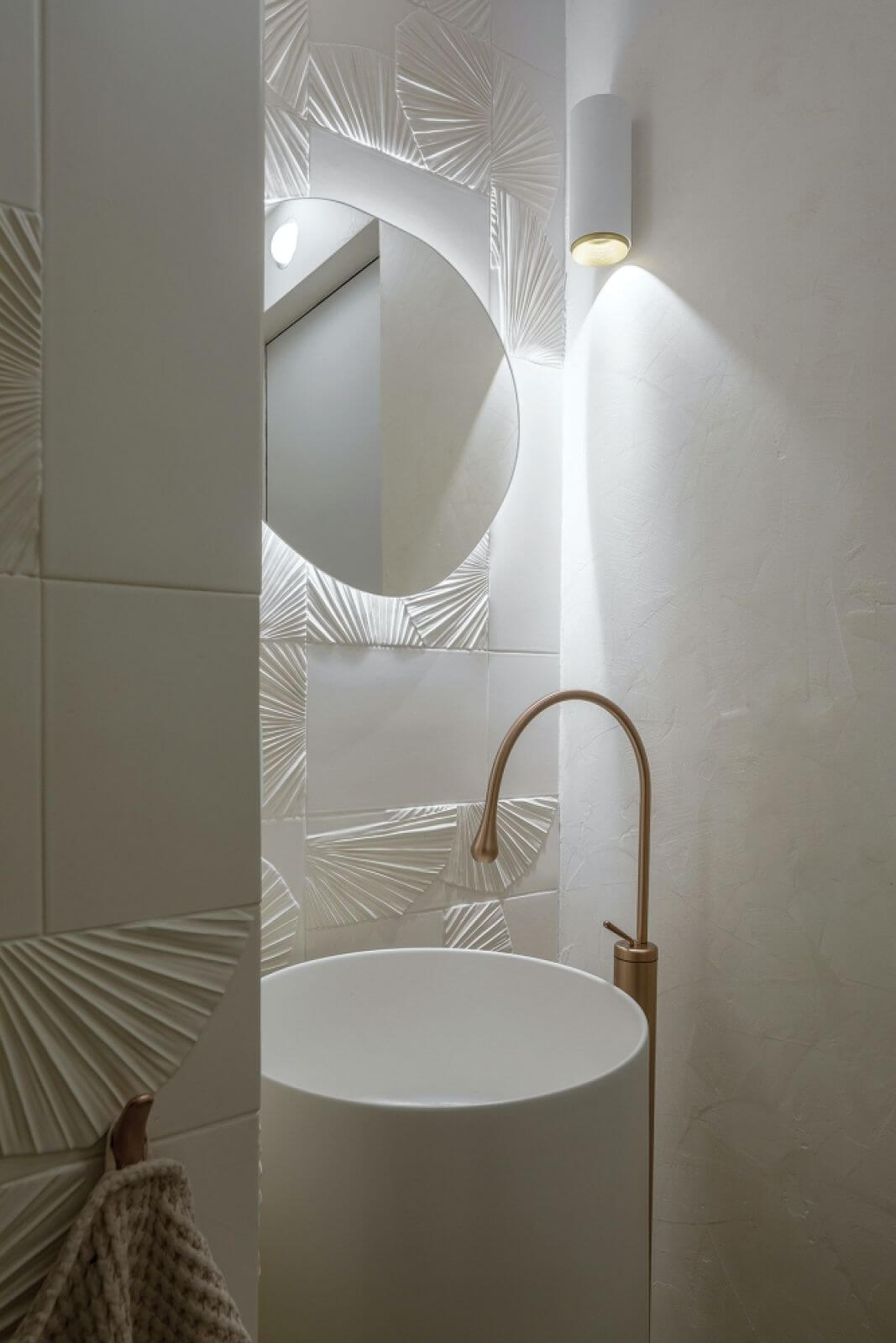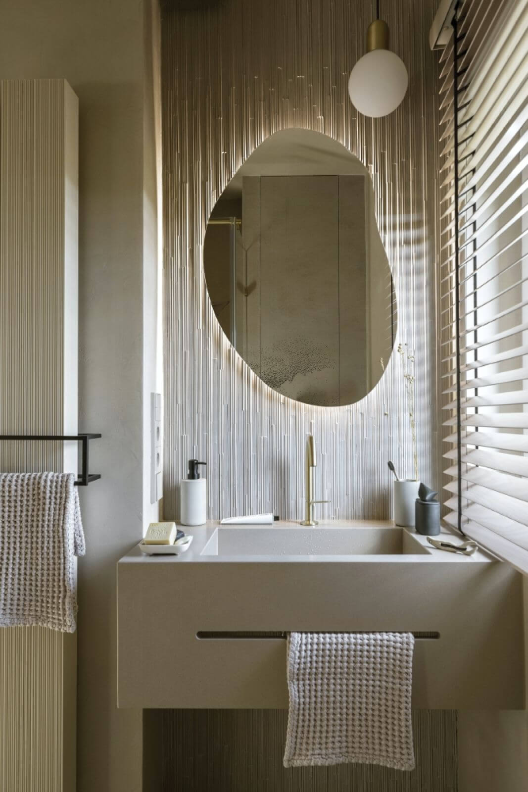 Klimat wnętrz buduje kolorystyka, stonowana, przyjazna dla oka, zachęcająca do odpoczynku – odcienie ciepłego piasku uzupełniają bałtyckie błękity. To idealne tło dla naturalnych materiałów o różnych strukturach.
