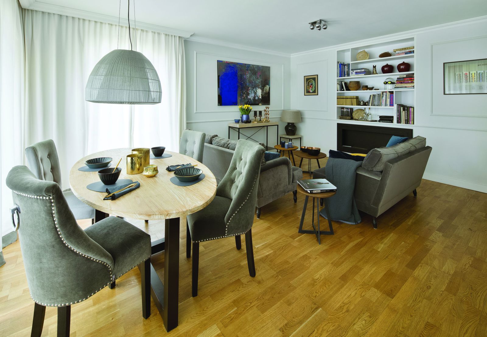 Niedaleko są plaża nad Wisłą i wał – idealne miejsca na spacery i wypady rowerowe. A kiedy udało mi się znaleźć lokum na parterze ze 160-metrowym ogródkiem, od razu poczułam, że to jest to, czego szukam – wspomina. Tak naprawdę powstało z połączenia dwóch mieszkań. Całość Beata przebudowała po swojemu. Znowu inaczej niż wszyscy, bo zamiast zostawić wielką otwartą przestrzeń, podzieliła ją na kilka wygodnych pokoi. – Chciałam, żeby wyglądało jak mieszkanie w kamienicy, bo zawsze podziwiałam takie w Paryżu, Wiedniu czy Berlinie – dodaje. Wspomina, że urządzanie tego mieszkania było prawdziwą frajdą. Poszło sprawnie, bo od razu dokładnie wiedziała, czego chce i jakiego wystroju wnętrza oczekuje. – Miałam w głowie kolory ścian, pomysły na podłogi, rodzaj materiału na kanapy, a nawet kształt naczyń z zastawy stołowej.