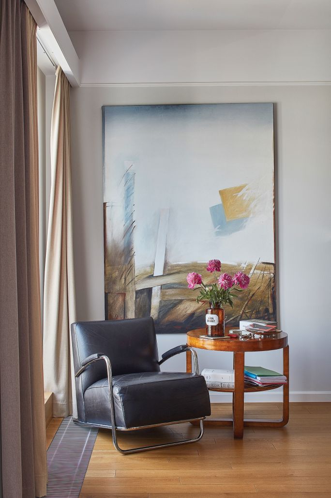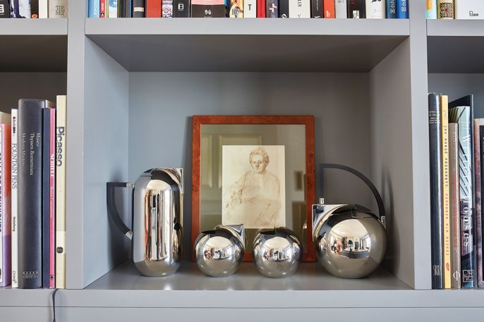 Po rodzinie została mi tylko srebrna cukiernica z domu dziadka, talerz mamy na słodycze z lat 50. i trochę zdjęć od taty. Ale przez lata gromadziłam przedmioty i meble z pchlich targów. Z mężem kupowaliśmy też stare rysunki i portrety i nazywaliśmy je „ciotka” czy „stryj”, choć to nie byli nasi krewni. Najbardziej lubię rzeczy z lat 30., z czasów, gdy moi rodzice przyszli na świat – jak ten stół jadalny, moje biurko albo okrągły, artdekowski stolik. Ważne jest dla mnie, że przy tych meblach ktoś już kiedyś jadł kolację albo pracował, że jest tam jakaś opowieść. Dzięki temu nie jestem znikąd. Moja historia składa się z nieobecności sztukowanej rzeczami z tamtego czasu. Ale bardzo lubię przełamywać je klasykami designu – krzesłem Starcka czy fotelem Barcelona Miesa van der Rohe.