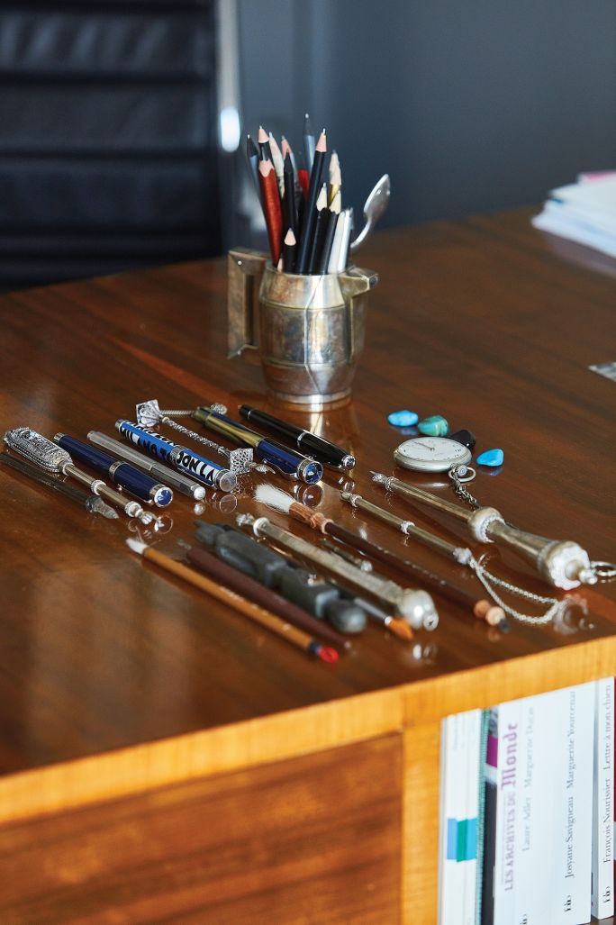To zabawne, bo z jednej strony po żydowskich przodkach mam przeświadczenie, że muszę być w każdej chwili gotowa do drogi i nie przywiązywać się do rzeczy, ale z drugiej – lubię bardzo ładne przedmioty. Najbardziej wszystko, co wiąże się z pisaniem i papierem. Mam mnóstwo ołówków. Kupuję je gdziekolwiek jestem. O, ten na przykład jest z Wenecji, ze szkła z Murano. Uwielbiam pióra wieczne – właśnie na urodziny dostałam od przyjaciół piękną Montegrappę, niebieską, bo przybory w tym kolorze lubię najbardziej. To chyba z powodu ukochanej książki z dzieciństwa – „Karolci”. Jej bohaterka miała niebieski koralik, który spełniał życzenia. Mam też bardzo dużo kałamarzy, no i jady – wskaźniki do czytania Tory.