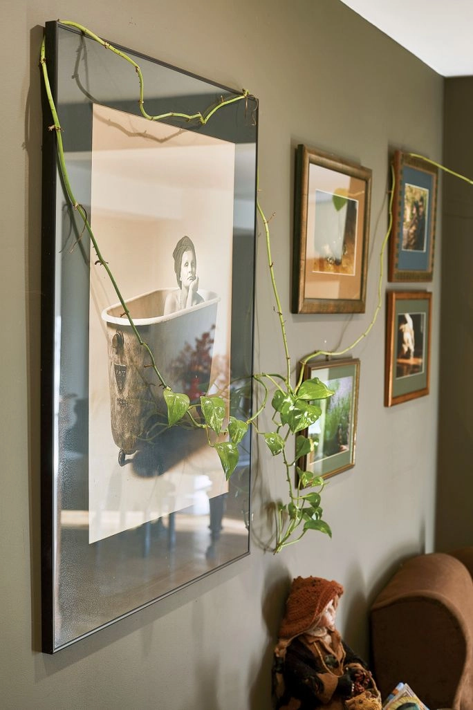 Tu na ścianie wiszą zrobione przeze mnie zdjęcia Markotnego, Łyżwy i Bambusa, ukochanych psów, których już nie ma. Na zawsze śpią w naszym ogrodzie. A na tym zdjęciu jesteśmy ja i Andrzej, w roku 1997, kiedy się tutaj wprowadziliśmy.