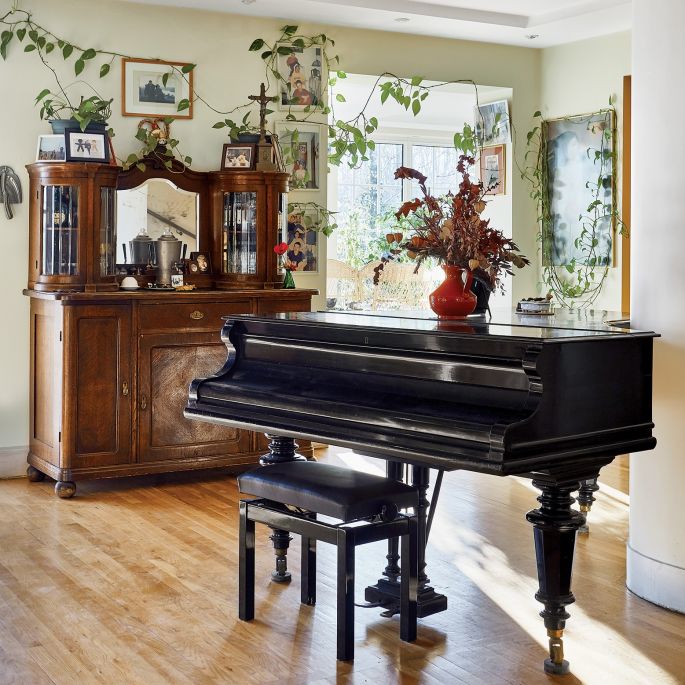 Myślę, że dali mi to po moim „Koncercie jesiennym na dwa świerszcze i wiatr w kominie”. Jeremi mówił do mnie czasem „świerszczyku”, po raz pierwszy usłyszał mój głos właśnie w tej piosence. A pod tą grafiką stoi statuetka hinduskiego bóstwa Ganesha, boga z głową słonia, który stale opiekuje się mną i moimi bliskimi. Ciągle szukam transcendencji i metafizyki, więc te indyjskie symbole boskości pomagają mi w poszukiwaniu osobistego Boga. Jeździłam przez kilka lat do Indii, nigdy nie rozstaję się też z naszyjnikiem, który dzisiaj również mam na sobie. Wierzę, że ten amulet opiekuje się mną tam, gdzie jestem. Kiedyś go zgubiłam i straciłam grunt pod nogami. Gdy się znalazł, złapałam równowagę. To jedna z niewielu rzeczy, która będzie pamiątką po mnie. W moim domu są pamiątki po innych.