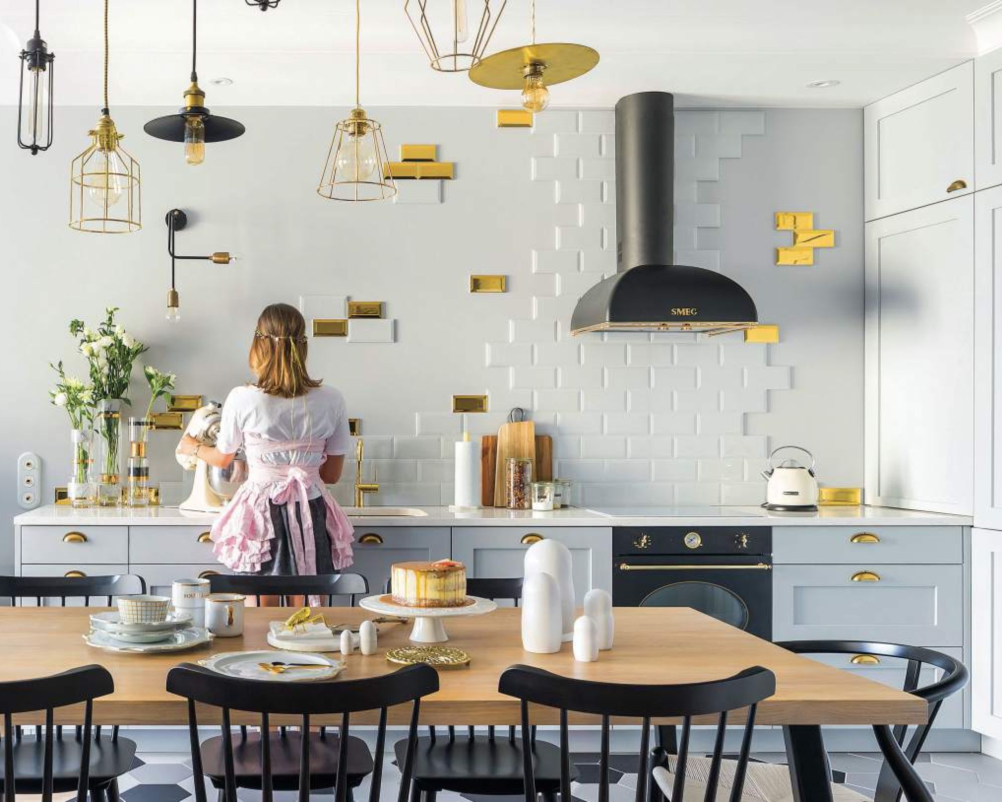 Trochę stylu francuskiego, trochę vintage – aranżacja wnętrza podkreślona złotymi akcentami i bardzo kobieca.
