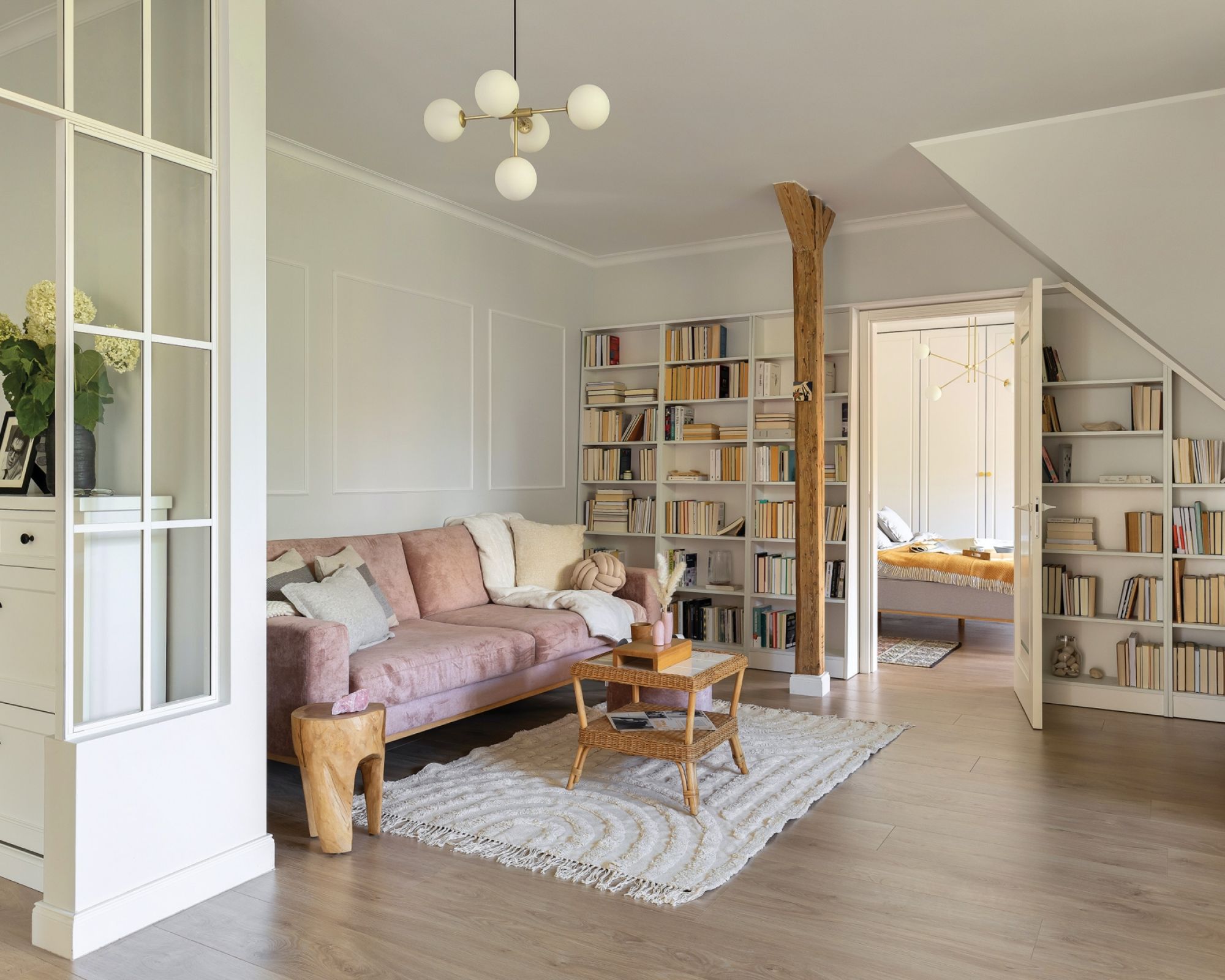Jak urządzić mieszkanie na poddaszu? W tym 80-metrowym wnętrzu architektka perfekcyjne wykorzystała skosy!