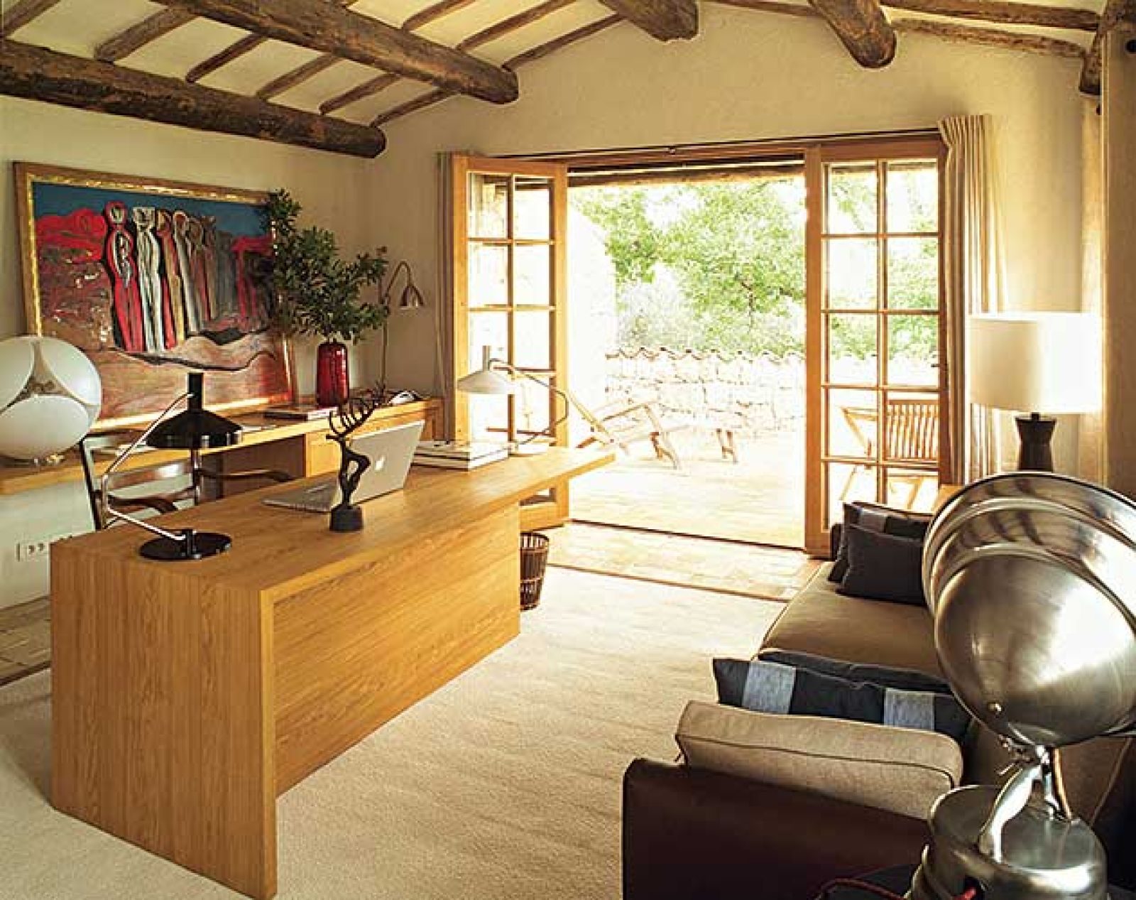 Sam dom nie jest przesadnie rozbudowany – na dwóch piętrach dwie sypialnie, kuchnia, jadalnia, salon, łazienka i gabinet. W sam raz dla ludzi, którzy wybrali tę okolicę na swoją letnią siedzibę. Przez większą część roku mieszkają w zimnej Anglii, więc nic dziwnego, że zdecydowali się na słoneczne stoki południowej Francji. Ten region słynie ze znakomitego jedzenia, więc właściciele sercem domu uczynili przestronną kuchnię. Dlatego, nietypowo, z holu wchodzi się wprost do niej, a dopiero stamtąd do pozostałych pomieszczeń.