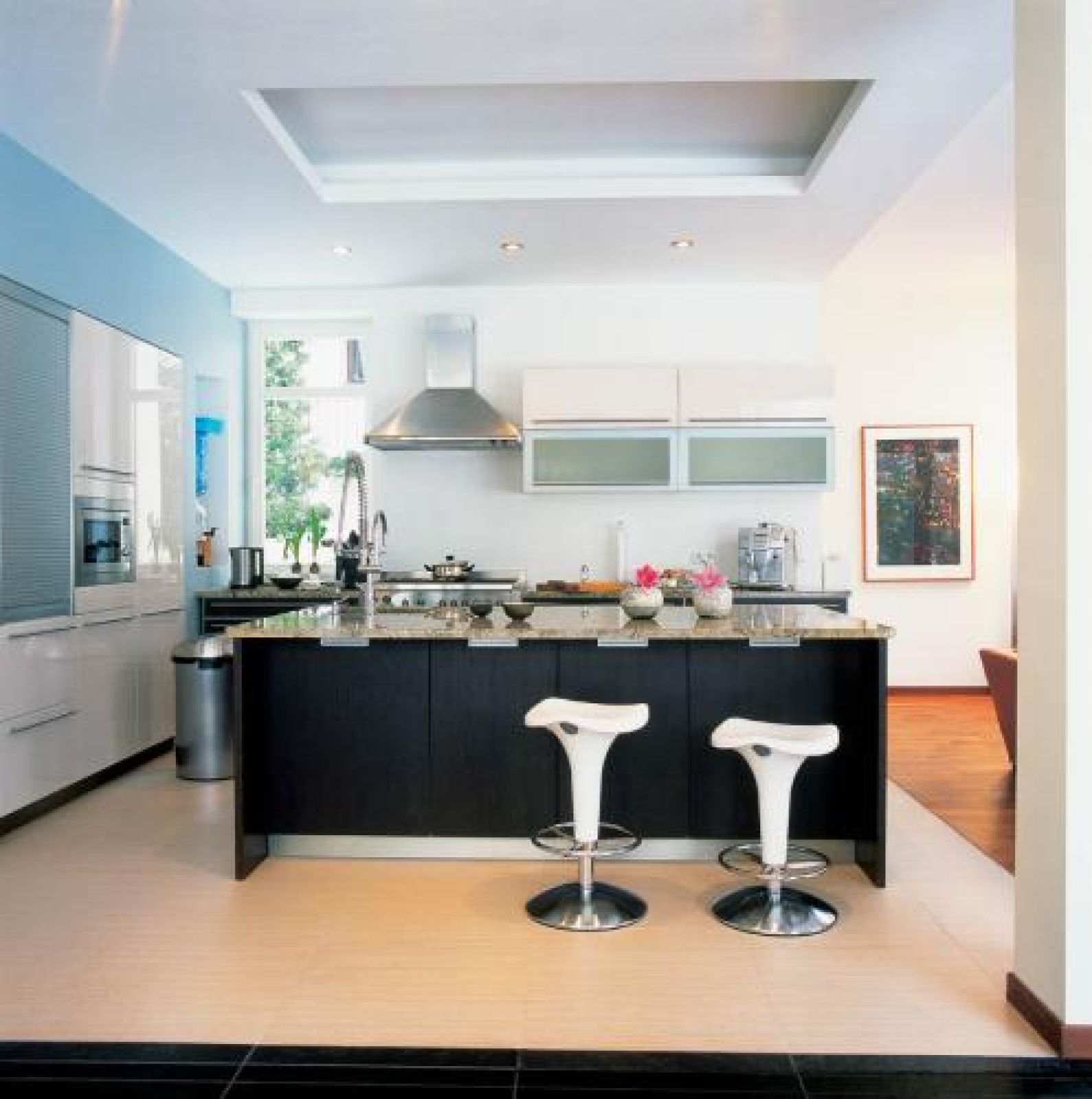 Jest olbrzymi, modernistyczny, składa się z trzech połączonych kostek, z których każda kolejna jest wyższa od poprzedniej. W każdej są ogromne, szklane ściany i tarasy na płaskim dachu (projekt firmy APA Wojciechowski). Dom ma około 450 metrów kwadratowych i zajmuje znaczną część niemałej działki. Na trawnik i kwiaty został mały kwadracik. Gospodarze powiększyli go... optycznie. Zamontowali lustra na murze, który oddziela ich od sąsiada. Teraz przeglądają się w nich chmury, drzewa, kwiaty i wszyscy odpoczywający na trawie.