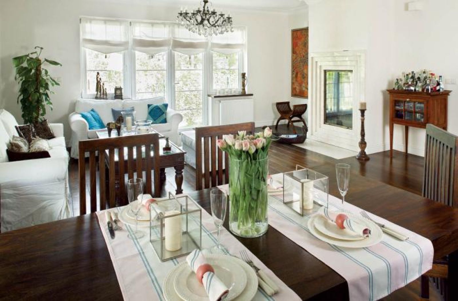 Jak na miłośników zwierzyny przystało, dom mają w miejscu idealnym – z widokiem na Las Kabacki. I pomyśleć, że o ich przeprowadzce zdecydował przypadek. Kiedy Monika i Piotr szukali większego mieszkania, trafili na segment w Józefosławiu. Tak ich zachwycił spokój oraz najbliższe otoczenie domu – las, pola i ogród z trzech stron – że argumenty posypały się same. Ale ostatecznie przesądził jeden. Z Józefosławia pod Warszawą ma blisko do swojej stajni, bo konie to miłość i praca Moniki.