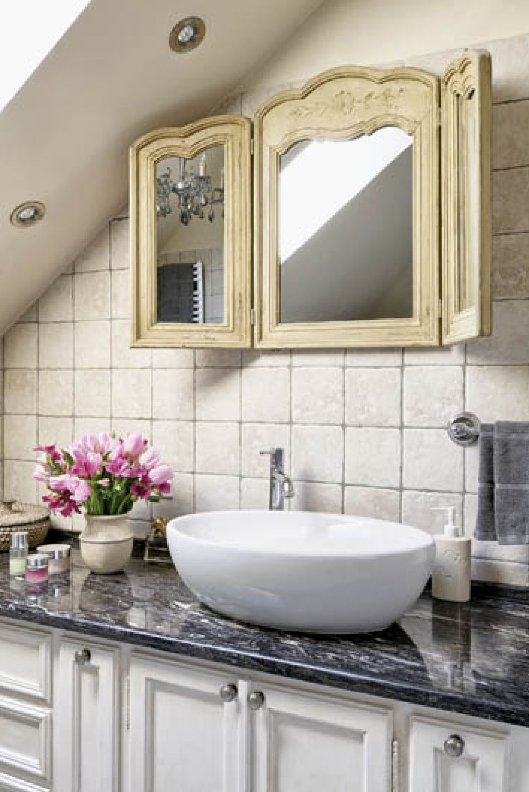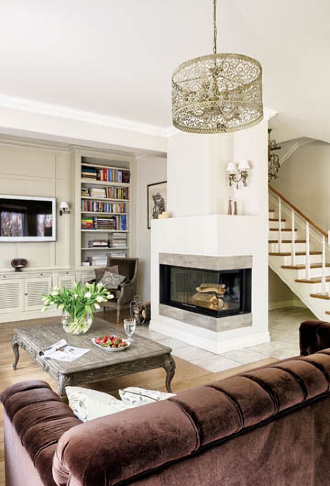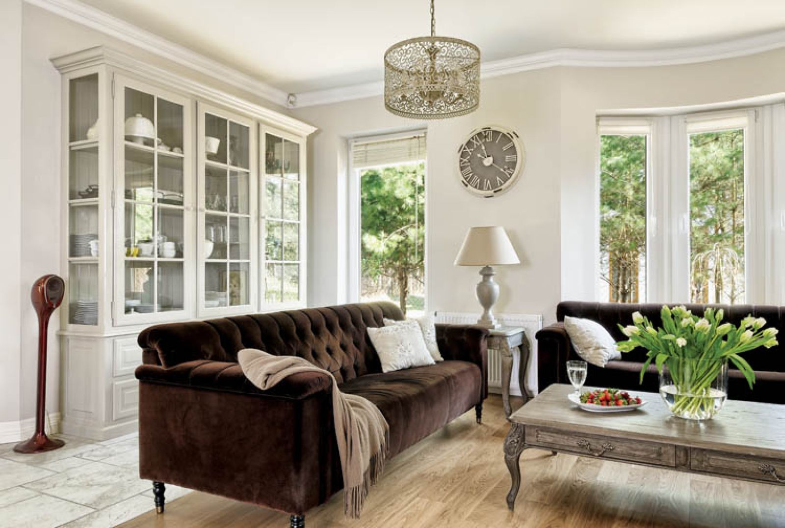 Podobnie jest w domu. Klasyka, ale gładka, wyczyszczona ze zdobień, detali. Bez tralek, rzeźbień, pilastrów. Są meble tradycyjne, nowoczesne i starocie z targu na Kole.