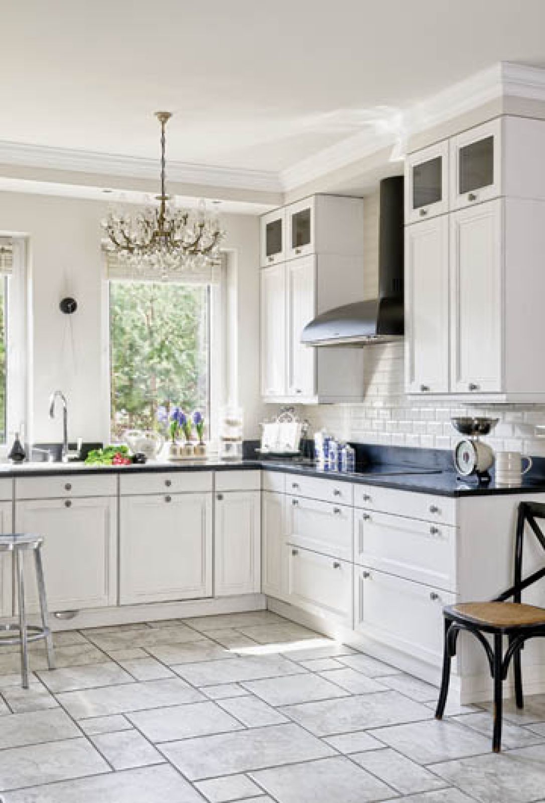 Joasia uwielbia swoją kuchnię. – Od początku wiedziałam, że ma być biało-czarna, z czarnym kamieniem na blatach, symetryczna, do samego sufitu – mówi. – Taka na modłę rzemiosła Shakersów (religijna sekta w USA, która robiła proste meble i przedmioty w stylu angielskiej prowincji – red.). Meble w duchu wiejskim, tyle że surowe, proste, do bólu funkcjonalne, bez akcentów retro. – Głowiliśmy się nad nimi z tatą. Kuchnia okazała się najbardziej emocjonalnym miejscem w domu, bo żywiołem Joasi, oprócz mody i urządzania, jest też gotowanie. Menu oczywiście włoskie, bo „oni nie kombinują, biorą trzy porządne składniki i jest królewska uczta. Żadne śmietanowe sosy, wystarczą makarony, oliwa, suszone pomidory, pesto, orzeszki piniowe”. Przyjaciele to uwielbiają, latem ciągle wpadają na kolacje.