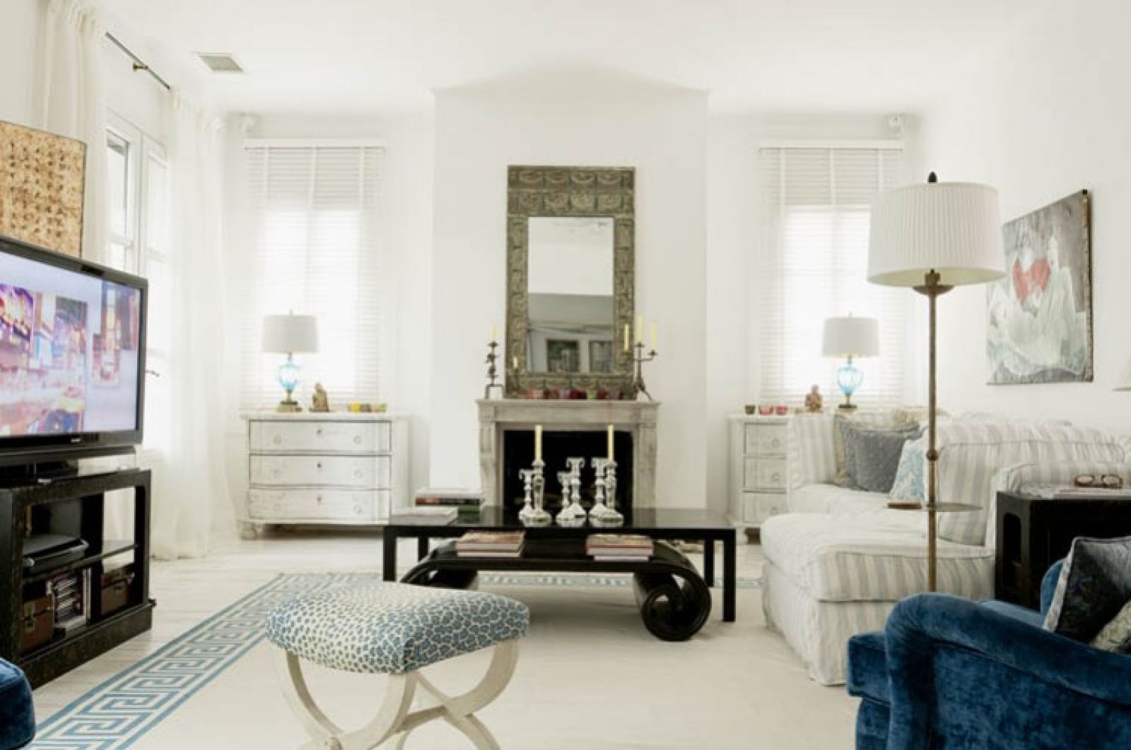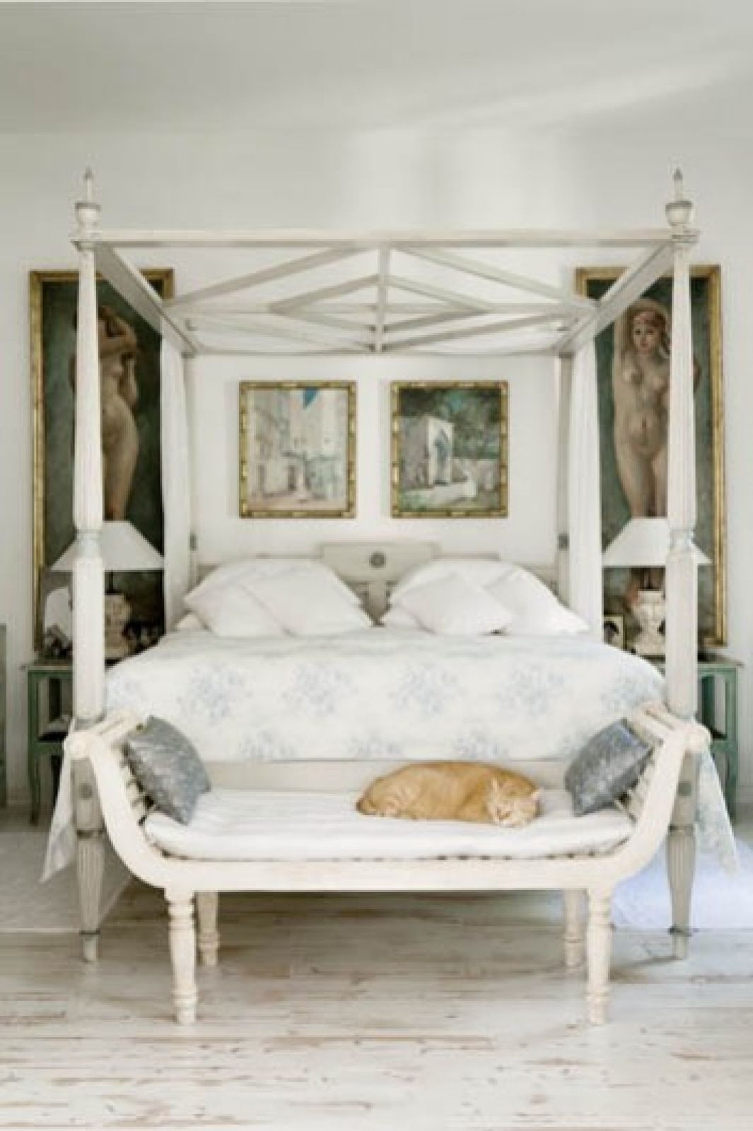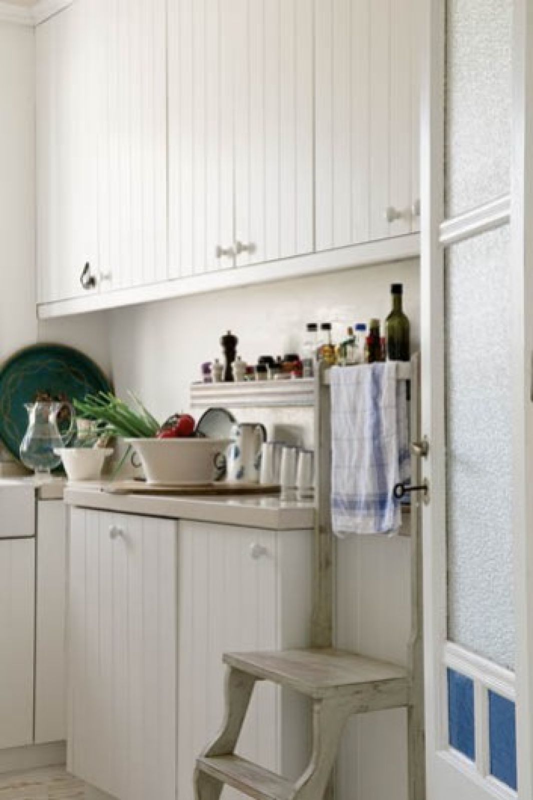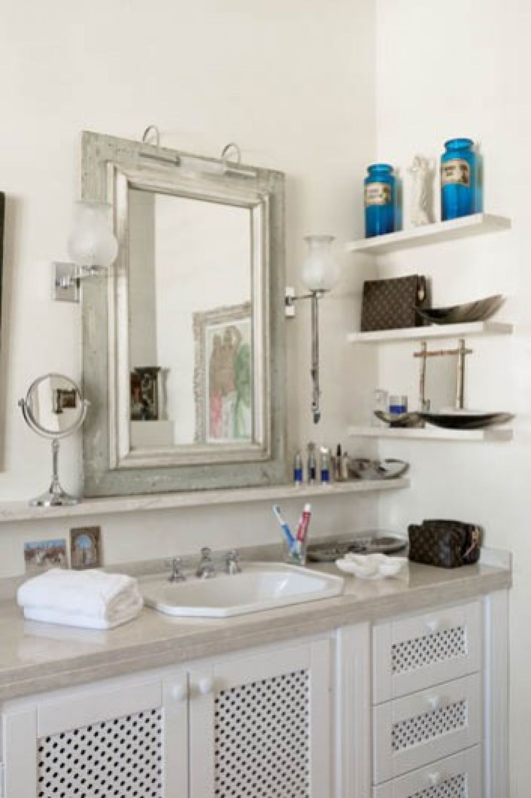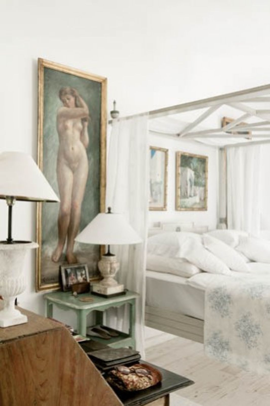 Meble z kolei to staranna mieszanina przedmiotów nowych i starych. W jadalni wzrok przykuwa XVIII-wieczny stół z Toskanii, z tego samego okresu pochodzi francuski kominek, zwieńczony zdobnym trumeau. Nowsze sprzęty Holger kazał pomalować na kolor piaskowca i gdzie trzeba, obić tkaninami w odcieniach błękitu. Część przedmiotów trafiła tutaj ze starego domu, jak na przykład para francuskich foteli czy XIX-wieczne obrazy przedstawiające scenki z życia na Bliskim Wschodzie.