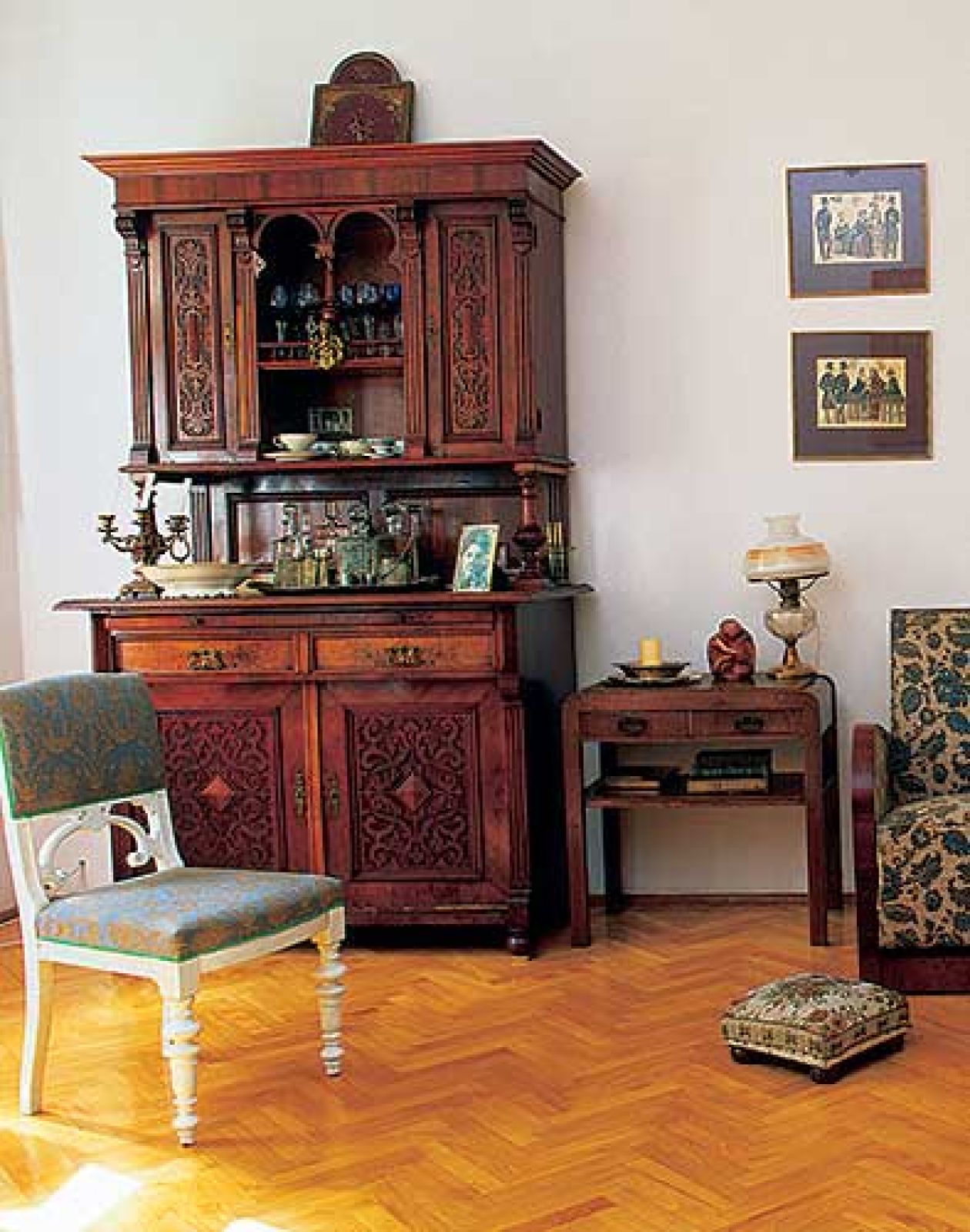Na szczęście mają taki sam gust, więc obyło się bez kłótni. Meble to rodzinne pamiątki (kanapa Ludwik Filip, biedermeierowska biblioteka i sekretera po mamie Magdy, secesyjny stół z krzesłami w jadalni od rodziców Rafała) i zdobycze z pchlich targów i antykwariatów.