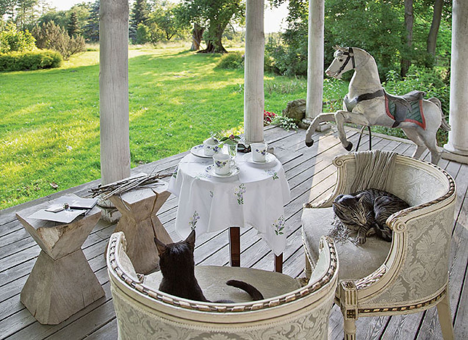 Taką trochę chatkę Kubusia Puchatka. To rzeczywiście mój własny świat, nieco odrealniony, ale zapewnia mi spokój. Bez względu na to, jak bardzo byłabym zmęczona, gdy wjeżdżam przez bramę do ogrodu, to wszystko ze mnie spływa. Mam poczucie przestrzeni i wolności. Z natury personifikuję przedmioty martwe, więc mój dom jest dla mnie żywą istotą. A te traktuję z miłością. Ten dworek to przyjaciel, który żyje swoim życiem, staram się dbać o jego dobro.