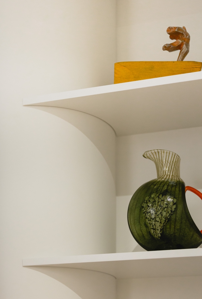 • mieszkanie z kominkiem i ryflowanymi meblami