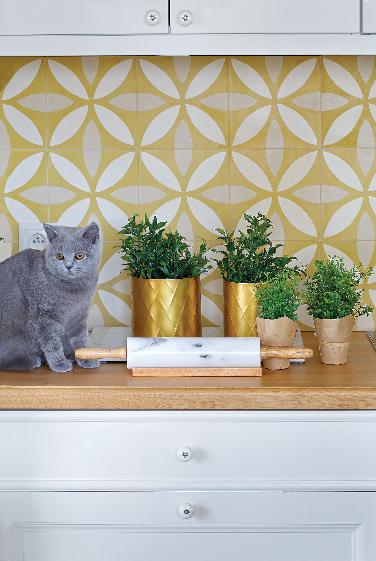 Kwiaty otulają wnętrze kuchni, łagodząc ostre formy geometryczne. Fot. Aneta Tryczyńska