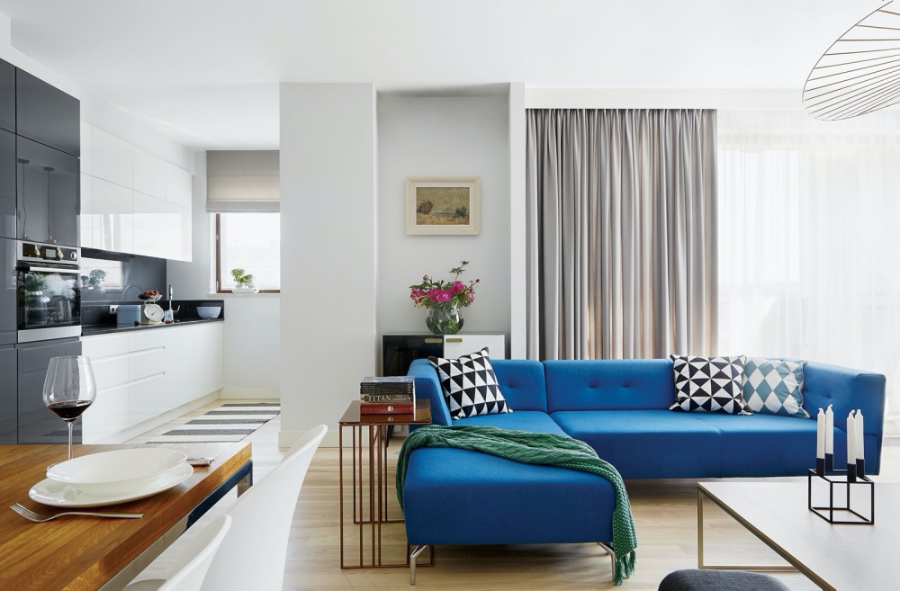 Nowoczesny salon z kuchnią, Projekt wnętrza: Agata Słoma, Zdjęcia: Jola Skóra, Stylizacja: Agnieszka Turosieńska