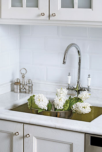 • Stylizowane meble, kran i zlewozmywak.