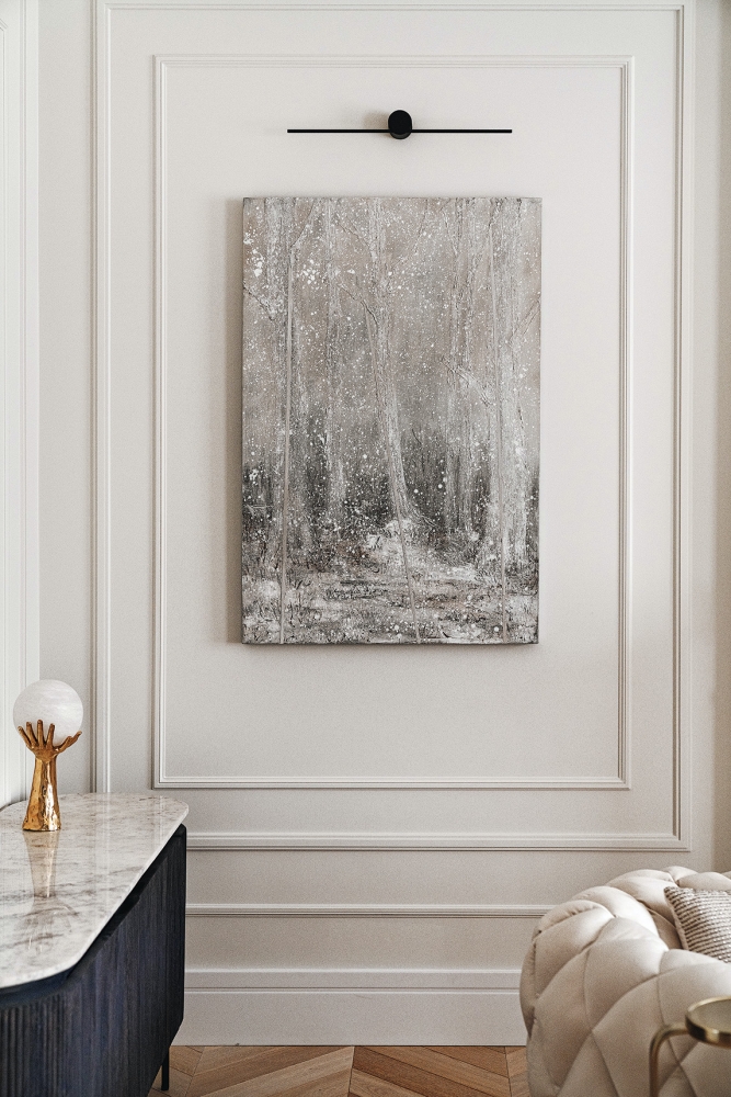 Powrót do artykułu Szykowny azyl – elegancki i kobiecy apartament w stylu modern classic z tapetą na suficie