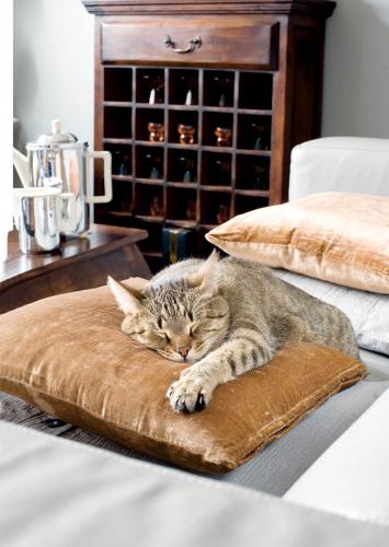 • Dwie kanapy, dwa stoliki, szafka na wino i... kot - oto przepis na miły kącik wypoczynkowy.