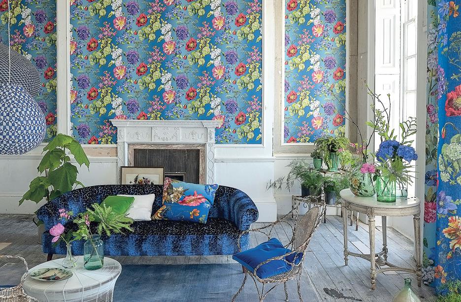 ALEXANDRIA - LAPIS, kwiatowy wzór na wyrazistym tle, DESIGNERS GUILD