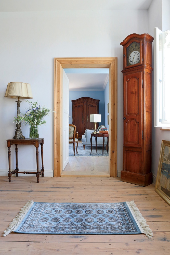 • W JADALNI Z WYJŚCIEM DO OGRODU PRZYWIEZIONY Z FRANCJI FOTEL Z XVIII WIEKU, DĘBOWA NIEMIECKA KOMODA Z KOŃCA XVII W.