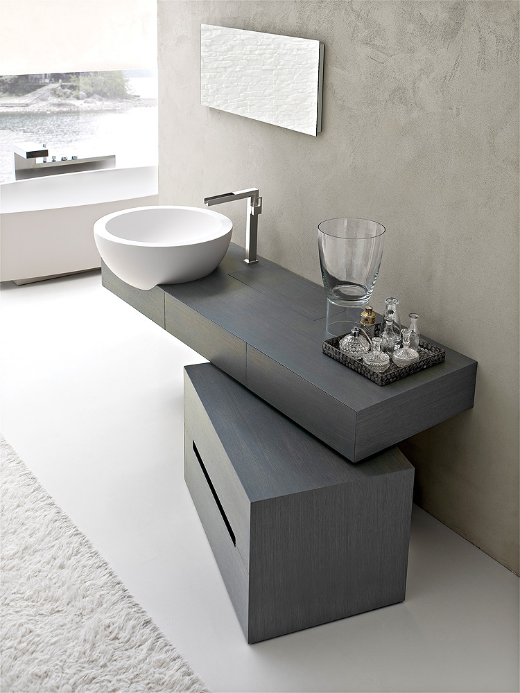 • Geometryczne szafki i baterie Toscoquattro (seria Rubinetti), które zaprojektował belgijski architekt Van Duysen. Cena