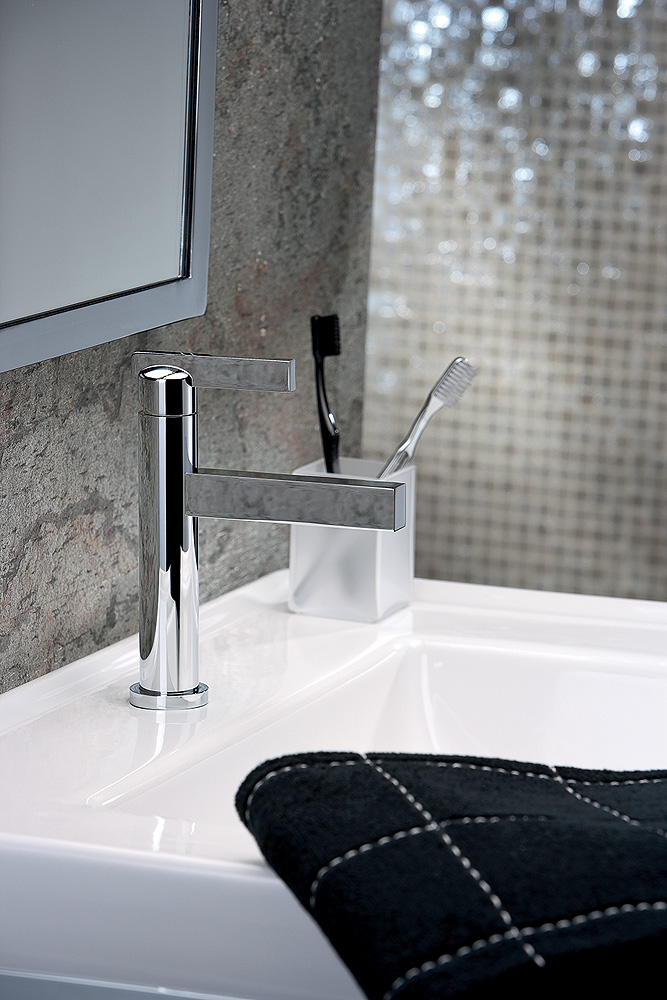 • Geometryczne szafki i baterie Toscoquattro (seria Rubinetti), które zaprojektował belgijski architekt Van Duysen. Cena