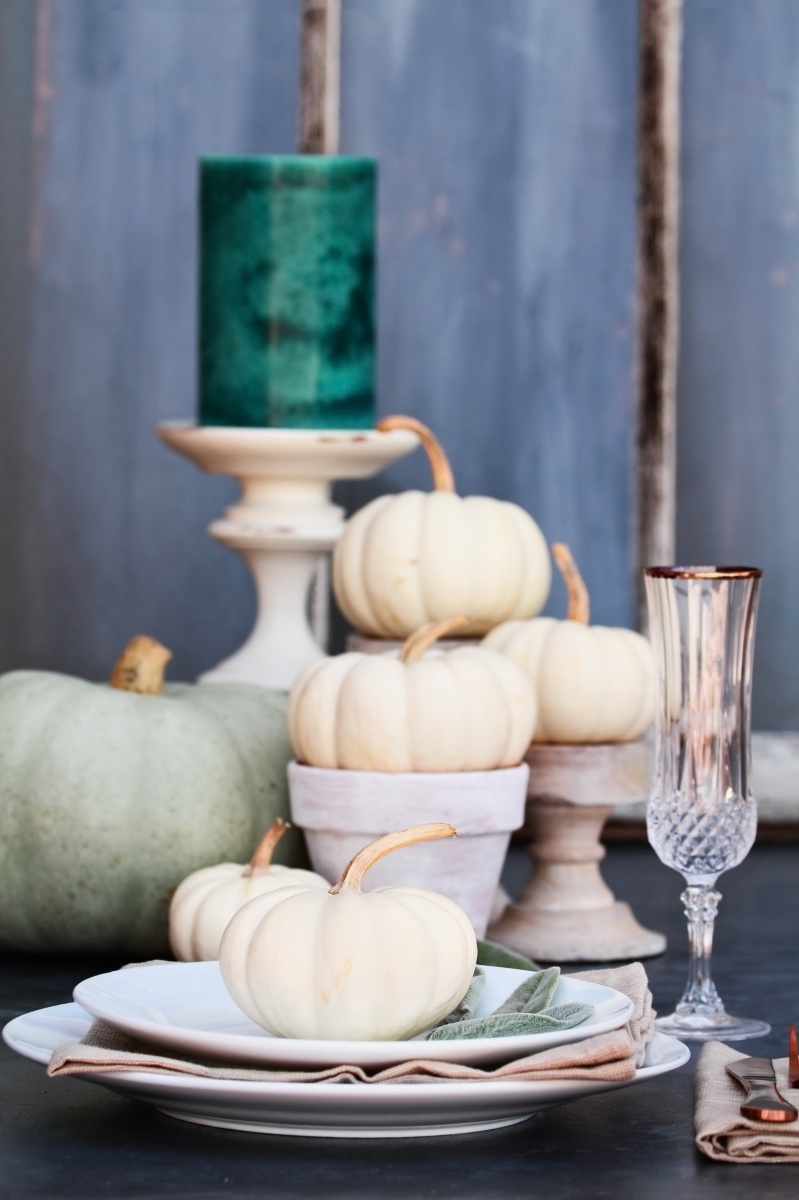 Dekoracje z białej dyni na stół - piękne i stylowe połączenie bieli z zielenią