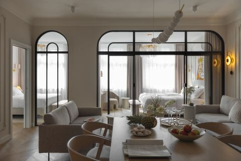 Eleganckie 70-metrowe mieszkanie z przeszkleniami w Krakowie – design i sztuka w starej kamienicy