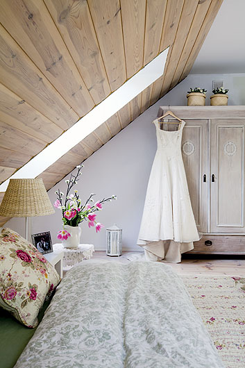 • Pełno tu serwetek wydzierganych z kordonka: różowe i białe w sypialni, zielone w łazience, niebieskie w kuchni.