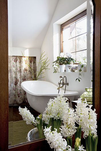 • Pełno tu serwetek wydzierganych z kordonka: różowe i białe w sypialni, zielone w łazience, niebieskie w kuchni.