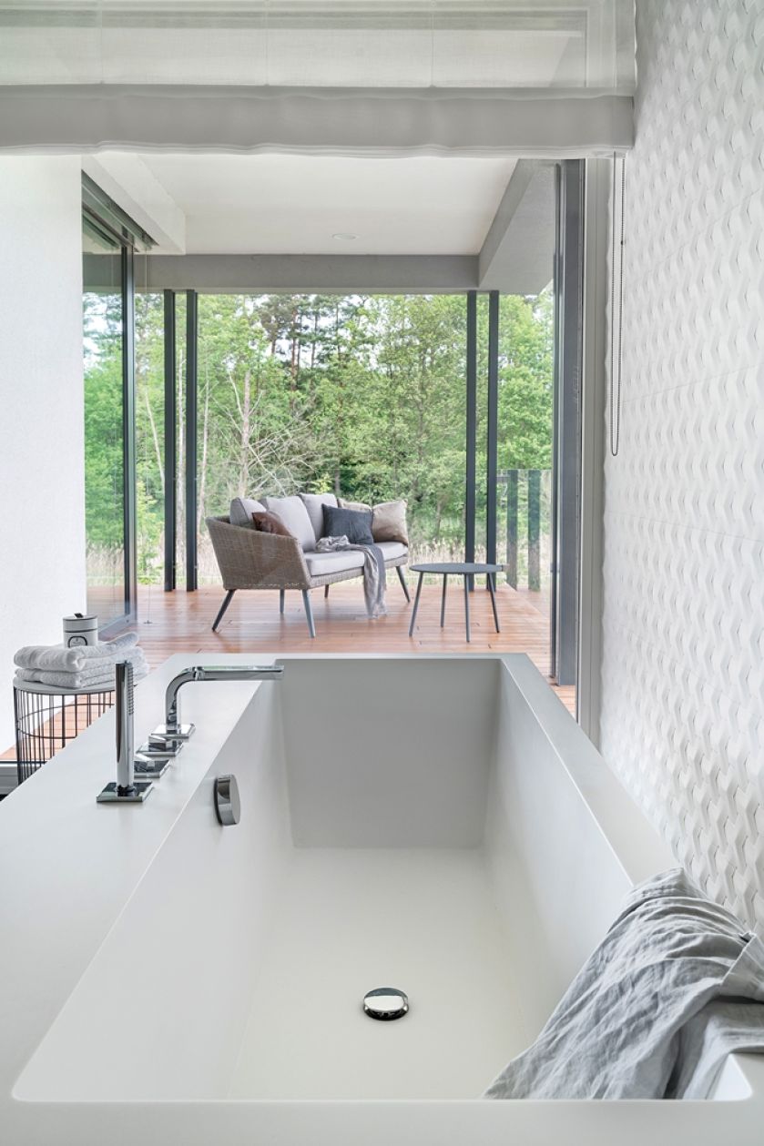 Ten dom jest tak wygodny, że aż rozleniwia. Hasłem przewodnim był „spokój”. Wnętrza urządzono w stylu zen: naturalnymi materiałami i w kolorach ziemi.