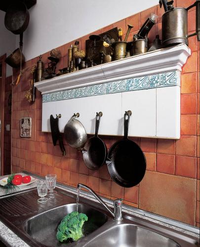 Nad zlewem wisi fragment starego gzymsu- zdobi i jest półką na drobiazgi.