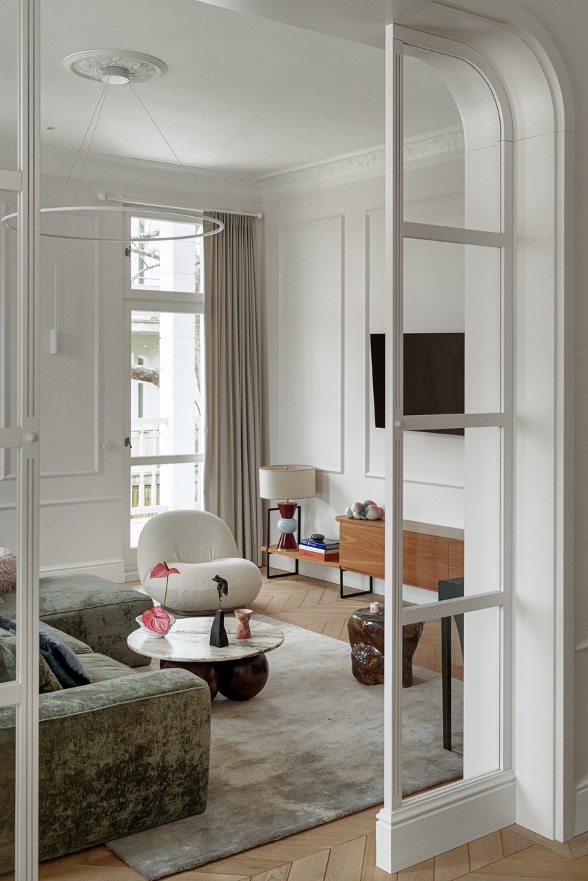 W stylowej kamienicy w centrum Sopotu projektantka stworzyła imponujące wnętrza łączące klasykę ze współczesnością, odrestaurowaną stolarkę ze sztuką i nowoczesnym designem.