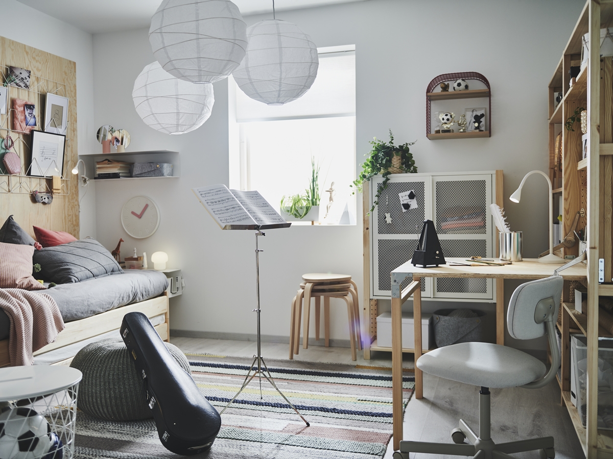 System przechowywania IVAR ze składanym stołek to dobre rozwiązanie do pokoju nastolatka, IKEA, ikea.pl
