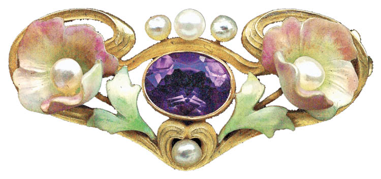 • Złota broszka z ametystem i perłą, 1900 r., www.tademagallery.com
