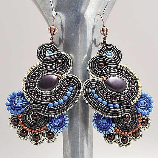 Robię biżuterię z... cieniutkiego sznurka, koralików i kamyków. Najbardziej lubię jaspisy, onyksy, turkusy i azuryty. Nieraz dodaję bursztyn, kryształy Swarovskiego albo guziki. Naszywam je na cieniutki filc, a potem naklejam na kawałek skóry, by ukryć szwy. Na koniec kilka psiknięć impregnatem. To jest właśnie soutache, od francuskiego „ozdobna taśma”. Technika wydaje się