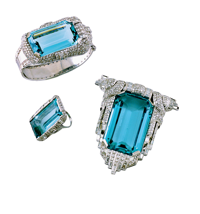 • Ulubiony komplet Joan Crawford: złoto, akwamaryny i diamenty, Verger Frères, 1935 r., Museum of Fine Arts, Boston