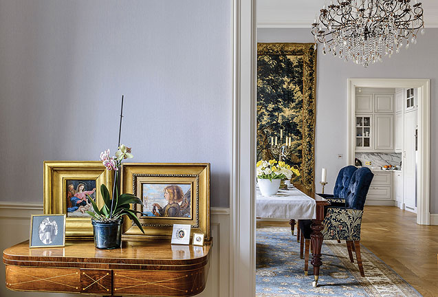 Urządzanie historycznego apartamentu bywa pasjonujące, zupełnie jak ŚLEDZTWO DETEKTYWA. Wojaże po Europie, zajadłe licytacje dzieł sztuki, koronkowe renowacje, tropienie misternych antycznych detali. Wysiłek jednak się opłaca, bo efekt jest zachwycający. Kurdybany, tapiserie, oryginalne konweksy, do tego Picasso, Weiss, Pochwalski, Filipkiewicz – równie bogatych zbiorów można by się spodziewać po nieźle wyposażonym muzeum. Zdobią jednak apartament... w warszawskiej kami