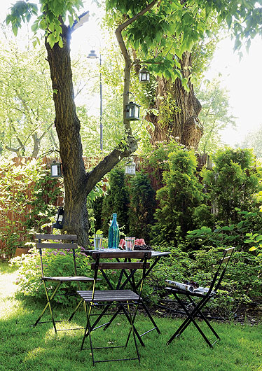 W lecie mieszkanie zmienia się w letnisko. 80 metrów powiększa się o ogród mierzący aż 350 metrów.