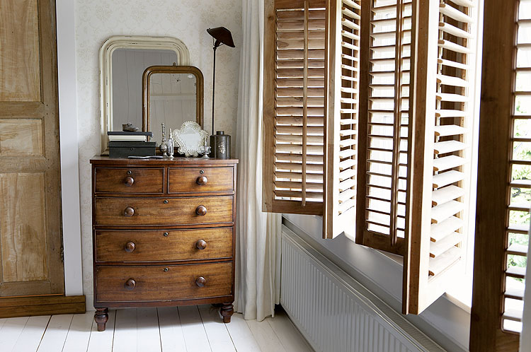 Drewniane żaluzjowe okiennice. Dom jak podróżny kufer