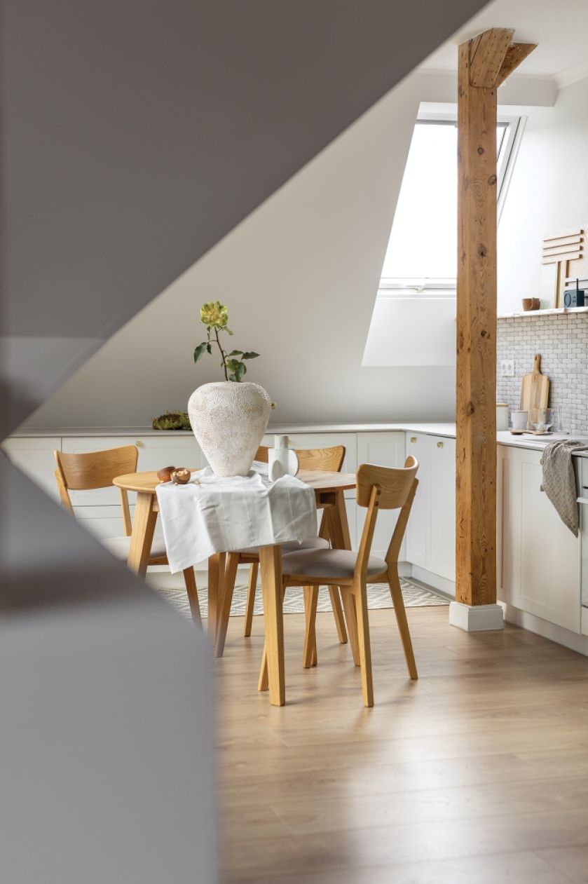 Jak urządzić mieszkanie na poddaszu? W tym 80-metrowym wnętrzu architektka perfekcyjne wykorzystała skosy!